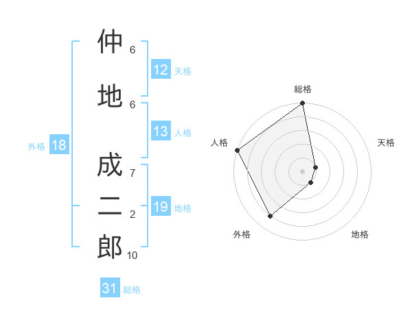 仲地 成二郎さんを姓名の画数から五運を鑑定