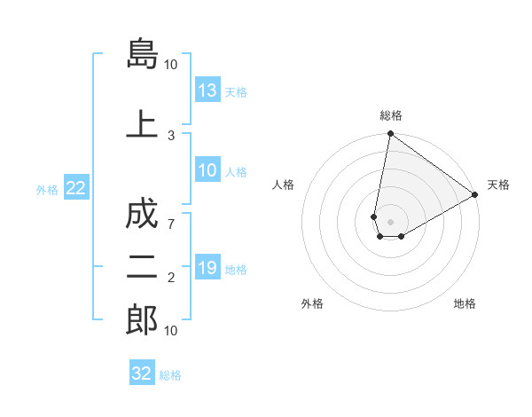 島上 成二郎さんの総格は32画の5点!