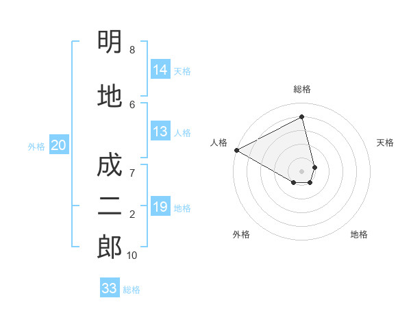 明地 成二郎さんを姓名の画数から五運を鑑定