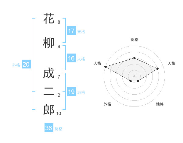花柳 成二郎さんの天格は17画の4点!