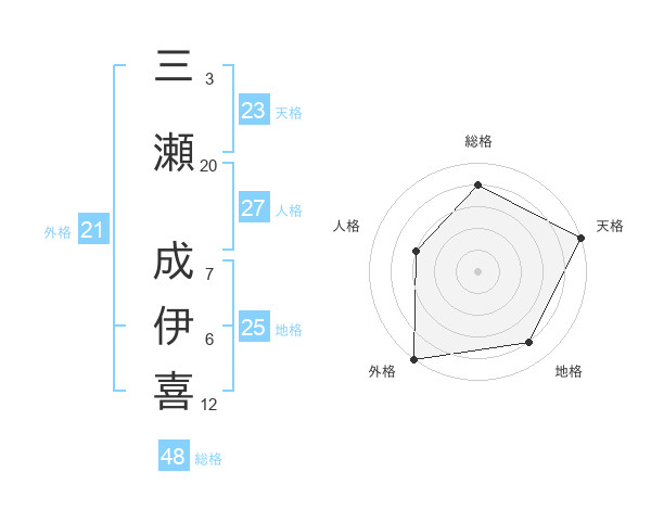 三瀬 成伊喜さんの外格は21画の5点!