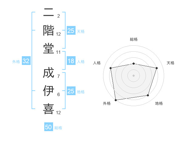 二階堂 成伊喜さんを姓名の画数から五運を鑑定