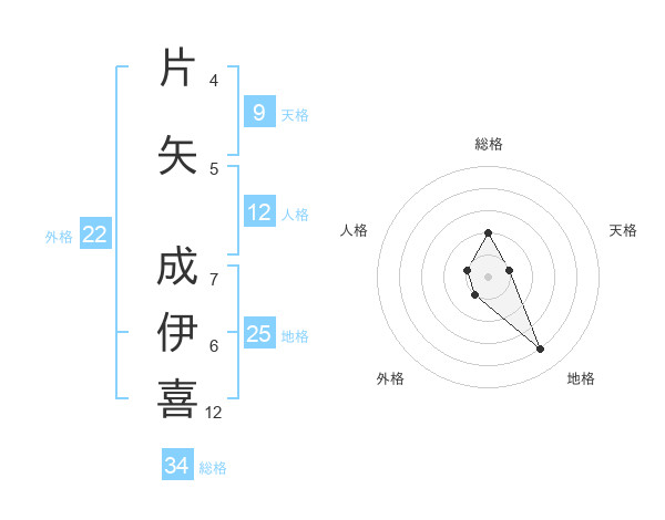 片矢 成伊喜さんを姓名の画数から五運を鑑定