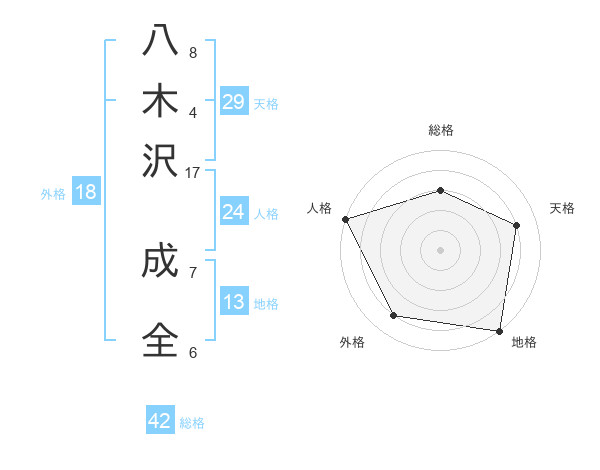 八木沢 成全さんの総格は42画の3点!
