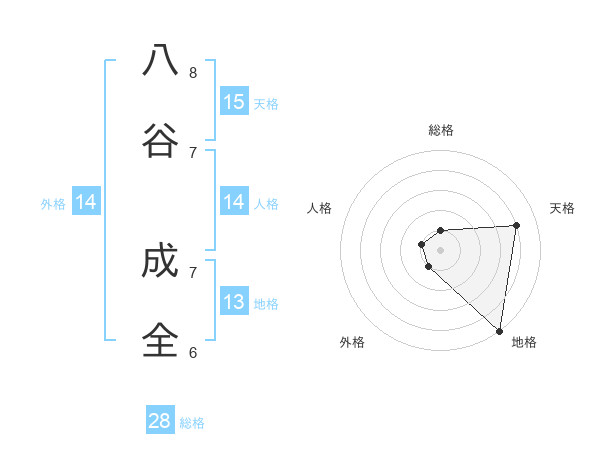 八谷 成全さんの天格は15画の4点!