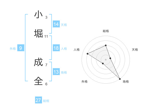 小堀 成全さんの総格は27画の3点!