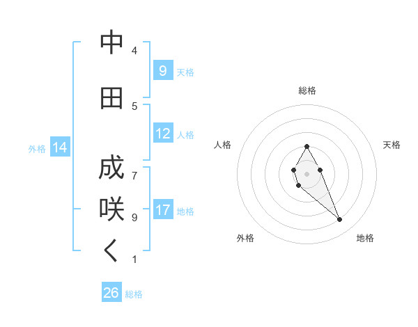 中田 成咲くさんを姓名の画数から五運を鑑定