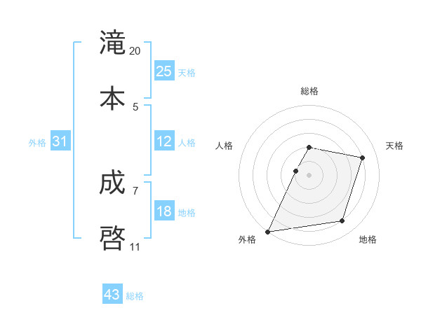 滝本 成啓さんを姓名の画数から五運を鑑定