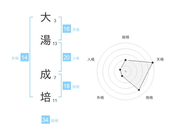 大湯 成培さんの天格は16画の5点!