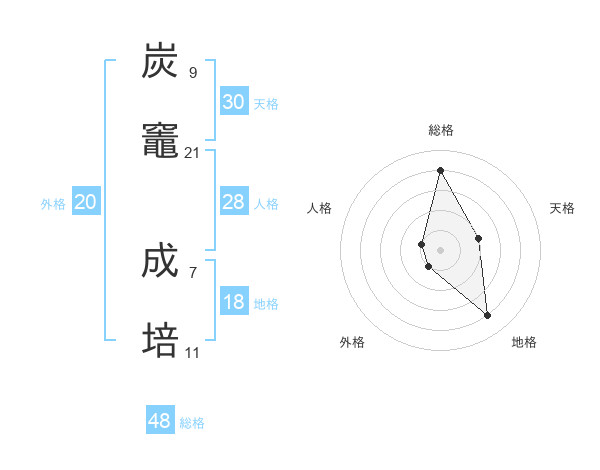 炭竈 成培さんの天格は30画の2点!