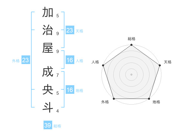 加治屋 成央斗さんの総格は39画の5点