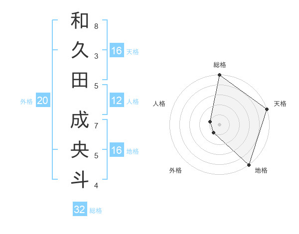 和久田 成央斗さんを姓名の画数から五運を鑑定