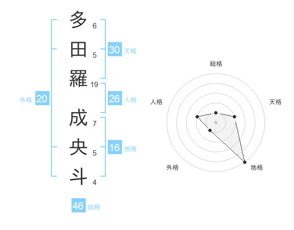 多田羅 成央斗さんを姓名の画数から五運を鑑定