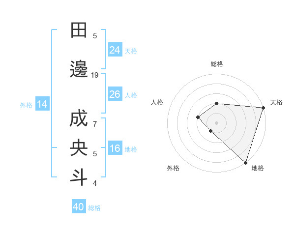 田邊 成央斗さんを姓名の画数から五運を鑑定
