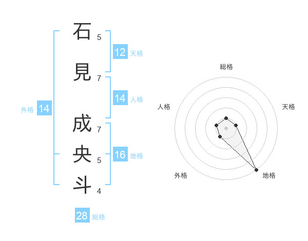 石見 成央斗さんの地格は16画の5点!