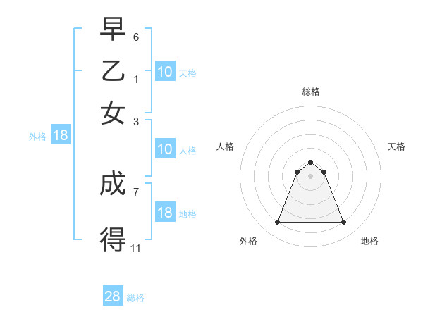 早乙女 成得さんを姓名の画数から五運を鑑定