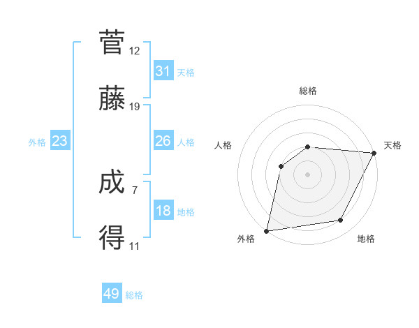 菅藤 成得さんの天格は31画の5点!