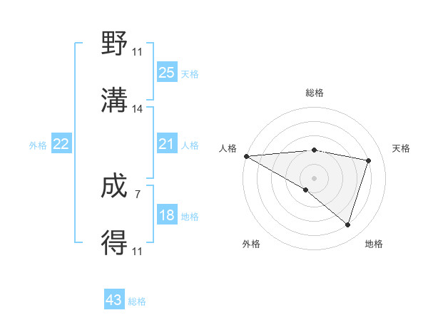 野溝 成得さんの天格は25画の4点!