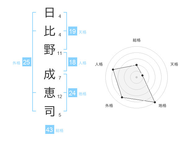 日比野 成恵司さんの総格は43画の2点!