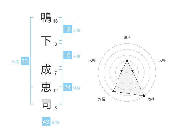 鴨下 成恵司さんを姓名の画数から五運を鑑定
