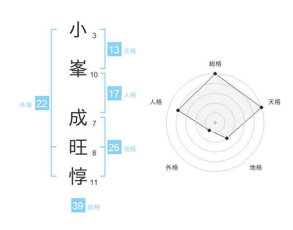 小峯 成旺惇さんを姓名の画数から五運を鑑定