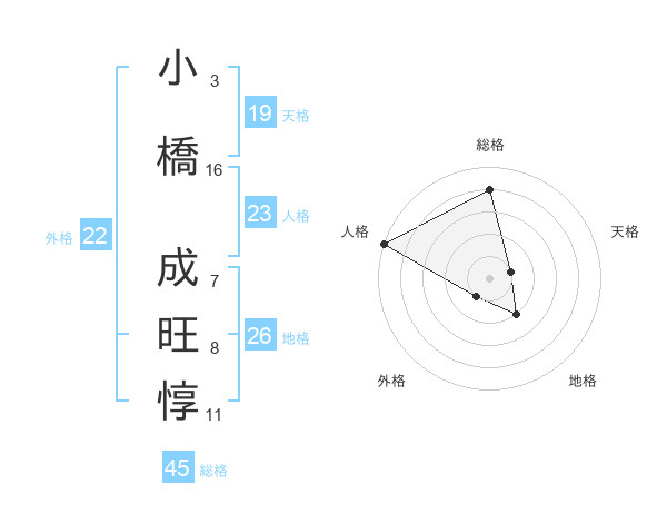 小橋 成旺惇さんを姓名の画数から五運を鑑定
