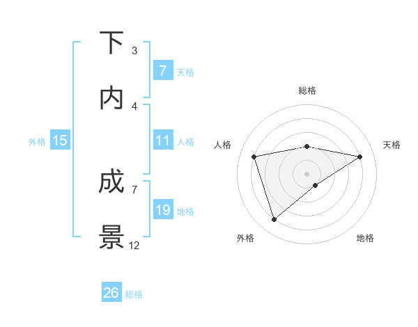 下内 成景さんの総格は26画の2点!