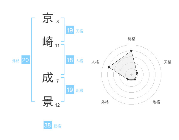 京崎 成景さんの総格は38画の4点!