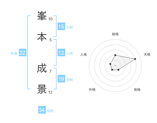 峯本 成景さんの総格は34画の2点!