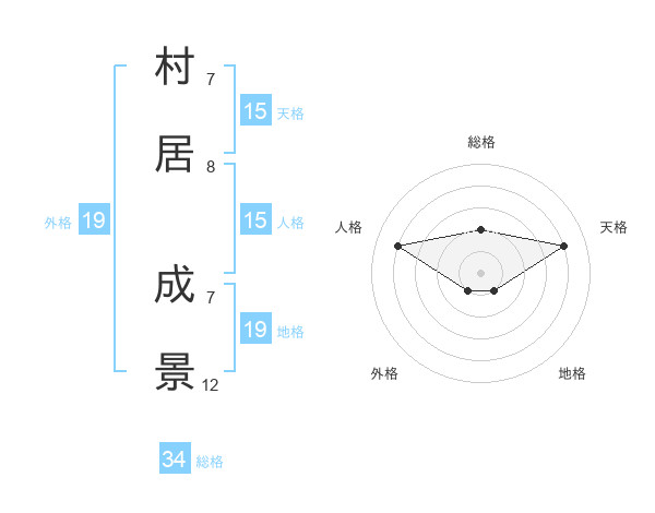 村居 成景さんの総格は34画の2点!