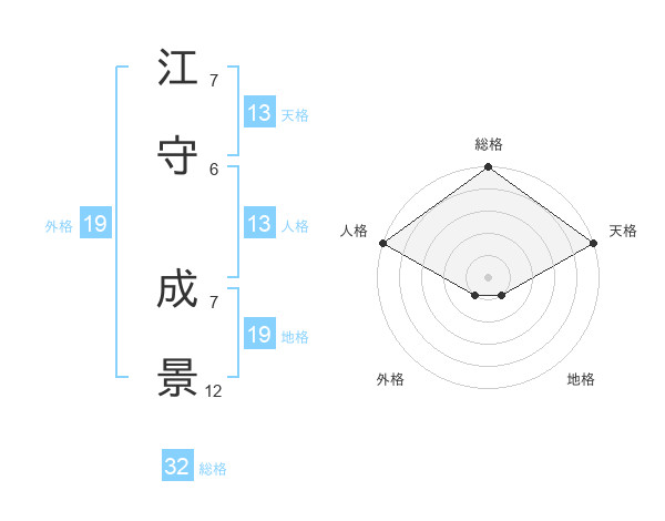 江守 成景さんの天格は13画の5点!