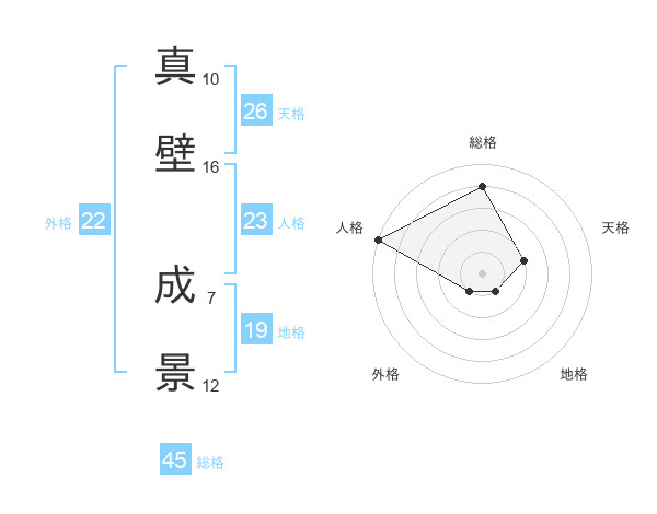 真壁 成景さんの総格は45画の4点!