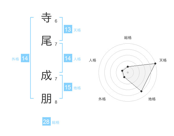 寺尾 成朋さんの天格は13画の5点!