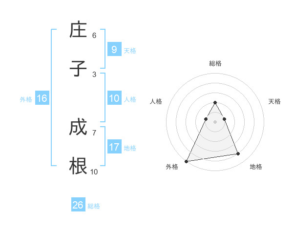 庄子 成根さんの総格は26画の2点!