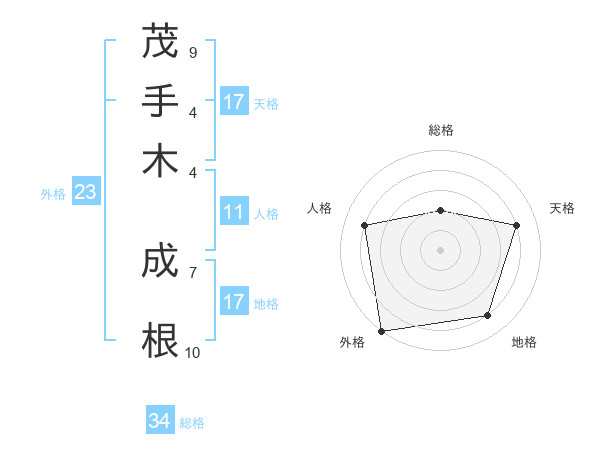 茂手木 成根さんを姓名の画数から五運を鑑定