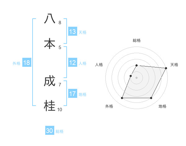 八本 成桂さんを姓名の画数から五運を鑑定
