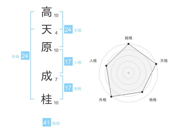 高天原 成桂さんの総格は41画の5点!