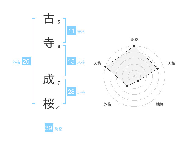 古寺 成桜さんの総格は39画の5点!