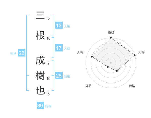 三根 成樹也さんを姓名の画数から五運を鑑定