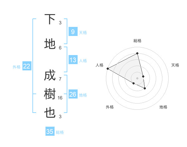 下地 成樹也さんの総格は35画の4点!