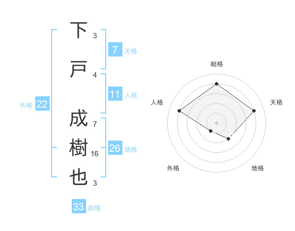 下戸 成樹也さんの総格は33画の4点!