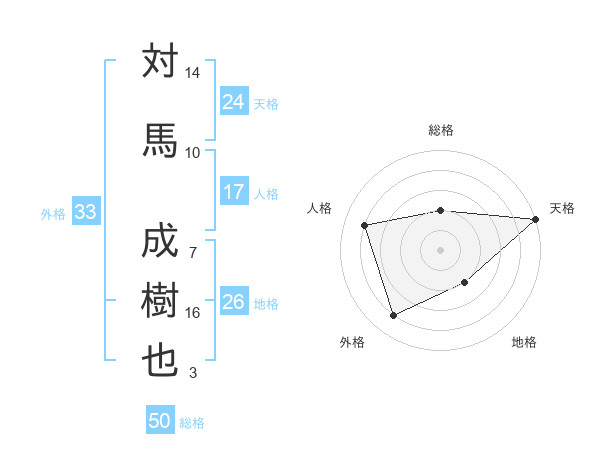 対馬 成樹也さんを姓名の画数から五運を鑑定