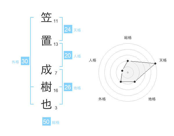 笠置 成樹也さんを姓名の画数から五運を鑑定