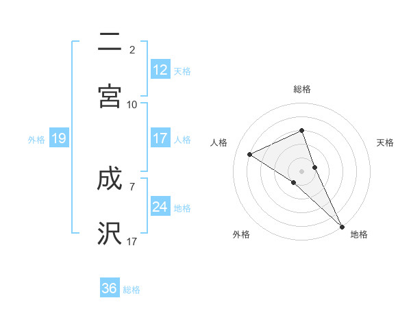 二宮 成沢さんの地格は24画の5点!