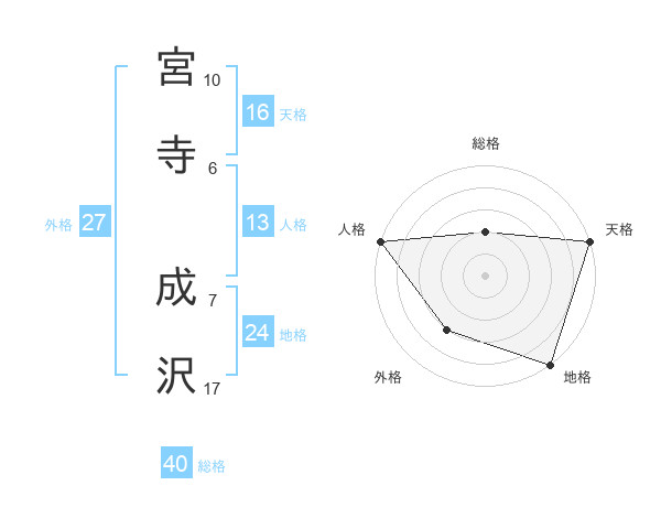 宮寺 成沢さんの総格は40画の2点!