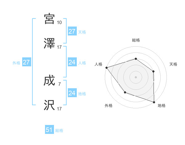 宮澤 成沢さんを姓名の画数から五運を鑑定