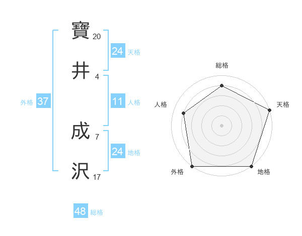 寶井 成沢さんを姓名の画数から五運を鑑定
