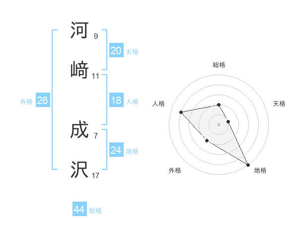 河﨑 成沢さんの総格は44画の2点!