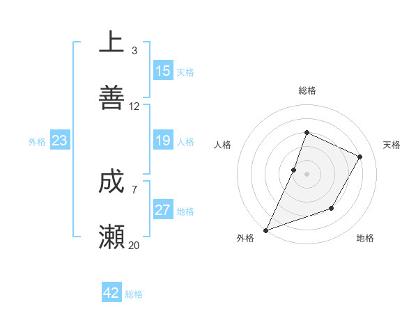 上善 成瀬さんを姓名の画数から五運を鑑定