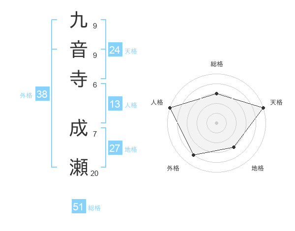 九音寺 成瀬さんの総格は51画の3点!